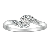 This pretty bypass diamond promise ring is set in solid 10 karat white gold. Featuring a center diamond of .07 carats and 2 side diamonds this wonderful promise ring shows your true feelings. Diamond weight is .10 carats diamond color is H/I diamond clarity is I2.