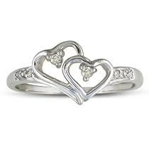 Very cute double heart diamond promise ring. She will adore this ring. Featuring 4 fiery diamonds of J/K color and I2/I3 clarity SuperJeweler.com's 1 star quality. Available in ring sizes from 4 to 9 1/2 in 1/2 sizes