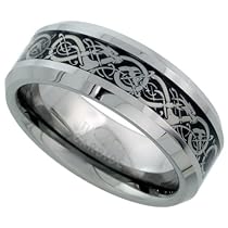 This beautiful Black tungsten carbide ring is 8MM in width and comfort fit. It is all high polish with beveled edges. If you are looking for a ring that is scratch proof and forever keep its shine than our Tungsten Carbide rings are for you. Tungsten Carbide is ranked second hardest next to diamond on the Mohs scale diamond being a 10 followed by Tungsten Carbide as 9. All of our Tungsten rings are Cobalt Free and hypoallergenic. Our rings will not cause skin irritations or turn your fingers green. Due to the Hardness of Tungsten these rings can be laser engraved but not hand engraved. All ring come with a 100% Money Back Guarantee and a FREE leather ring Box.[]